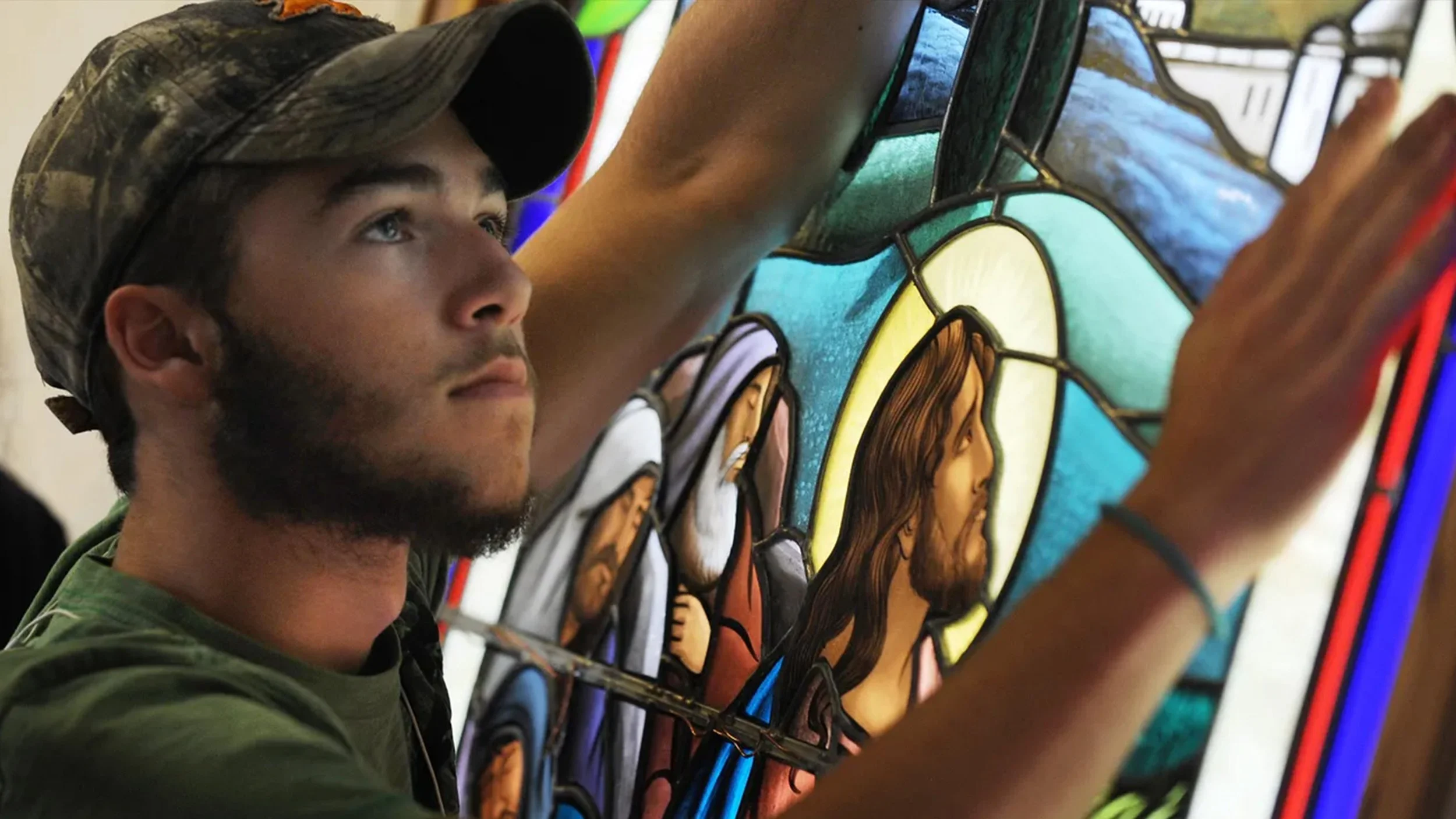 The multicolored panels, which show Jesus in various guises, will capture church members’ imaginations, he said.