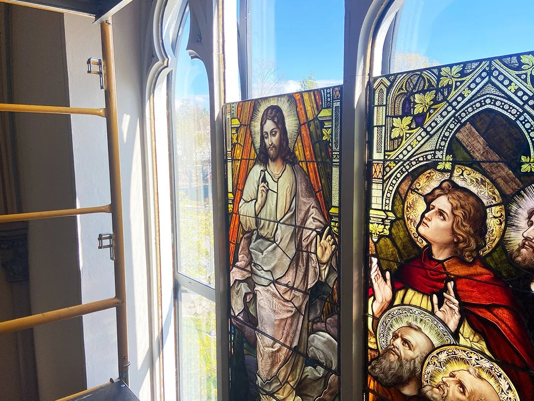 In August 2025, our restoration team was back at St. Francis Xavier Catholic Church in Petoskey, Michigan completing phase two of a project that began in early 2023.