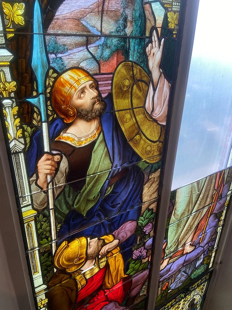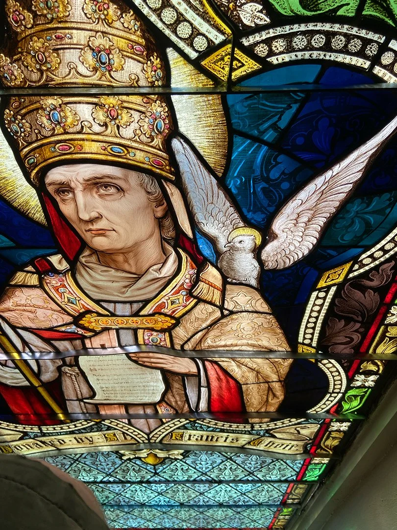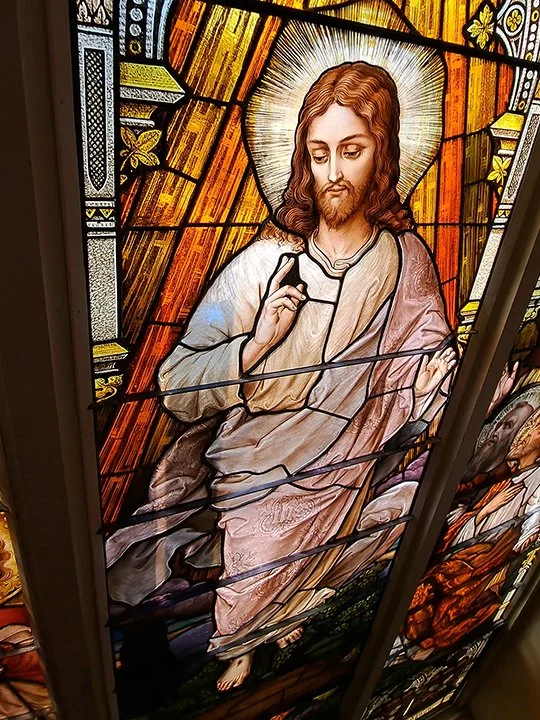 In early May of 2023, our studio began the first phase of the restoration process for these quite literally priceless Emil Frei originals. The late-great Emil Frei is of course a household name in the world of stained glass for his mastery in the Munich style. Mr. Frei, an already established stained glass master artist, emigrated from Germany somewhere around 1895 and started his own studio in 1898 which is still in operation today in St. Louis under the name Emil Frei & Associates. [2] The windows are estimated to have been created and installed between 1910 and 1915, shortly after the church building was completed in 1908. [1]